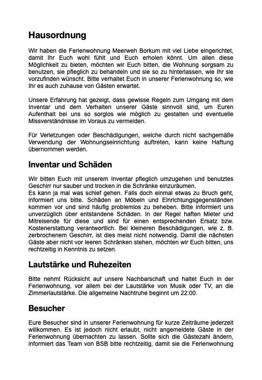 In der Wohnung findet Ihr unsere Infomappe mit allen wichtigen Informationen rund um die Wohnung und Eurem Aufenthalt auf der Insel. Hier gibt es ein digitales Abbild der Mappe.